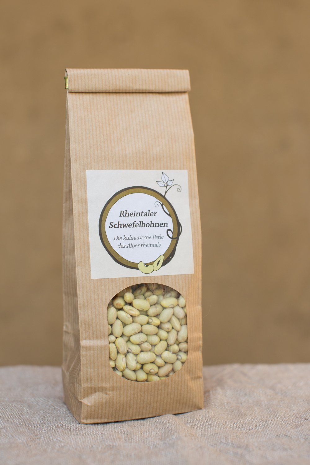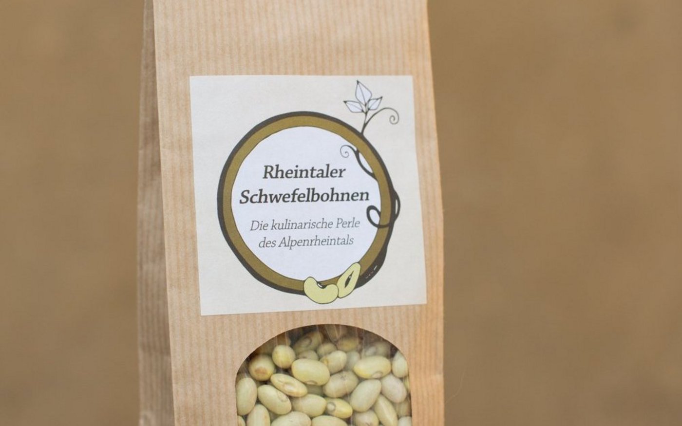 Die Wiederbelebung einer alten Ackerkultur hat im Rheintal mit dem Ribelmais schon einmal funktioniert. Historisch damit verbunden ist die Schwefelbohne. «Die Bauernfamilien haben den Ribelmais mit einigen Reihen Schwefelbohnen angebaut», erzählt Michael Hammerschmidt. Er ist für den Anbau und die Inwertsetzung der Bohne im Rahmen eines vom Bund unterstützen Projekts zur nachhaltigen Nutzung genetischer Ressourcen verantwortlich. Schwefelbohnen sind sogenannte Reiserbohnen, eine Übergangsform zwischen Stangen- und Buschbohnen. Je nach Selektion sind sie standfester oder eher rankend. «Das macht den Anbau schwieriger, weil die Pflanzen schneller lagern», bemerkt Hammerschmidt. Man selektiere aktuell aus Samen verschiedener Herkünfte standfestere Sorten und arbeite an gesundem Saatgut.