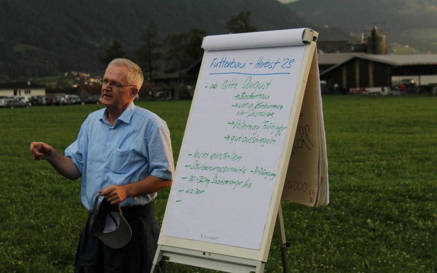 Fässlers Futterbautipp für Übersaaten: «Säen Sie Übersaaten ab Mitte August.» Die alte Grasnarbe stelle ab diesem Zeitpunkt eine geringe Konkurrenz dar, und Bodentau sorge für Feuchtigkeit.