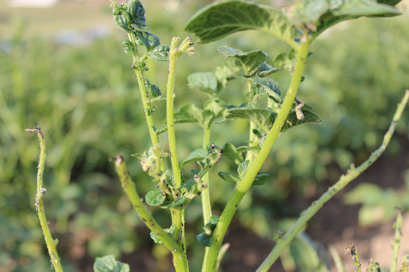 Gleichzeitig sollte nun der Blattlausbefall in den Kartoffeln beobachtet werden. Dazu werden an zehn Pflanzen auf einem Fiederblatt vom unteren Drittel die Blattläuse gezählt und der Durchschnitt pro Fiederblatt berechnet. Die Bekämpfungsschwelle liegt bei zehn Blattläusen pro Fiederblatt. Sollte diese erreicht sein, gilt es für die Bekämpfung Folgendes zu beachten: Eine Sonderbewilligung ist nötig. Wurde bereits ein Acetamiprid-Produkt gegen den Kartoffelkäfer eingesetzt, darf keine weitere Applikation mit demselben Wirkstoff erfolgen. Pro Parzelle und Jahr ist nur eine Behandlung erlaubt. Stattdessen muss mit Produkten wie Teppeki oder Movento behandelt werden. Für diese sind keine Sonderbewilligungen nötig.