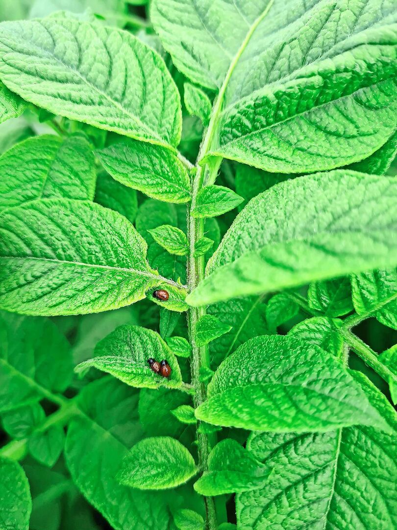 Weiter sind auf den Kartoffelstauden Eiablagen des Kartoffelkäfers sowie die ersten geschlüpften Larven zu finden. Die Bekämpfungsschwelle ist überschritten, wenn 30 % der Pflanzen Larven aufweisen oder pro Are ein Befallsherd aufzufinden ist. Bei einem Insektizid-Einsatz müssen verschiedene Aspekte berücksichtigt werden. Ohne Sonderbewilligung sind Mittel mit den Wirkstoffen Spinosad (Audienz, Elvis), Bacillus thuringiensis (Novodor 3FC) oder Azadirachtin A (Neem, Oikos) zugelassen.