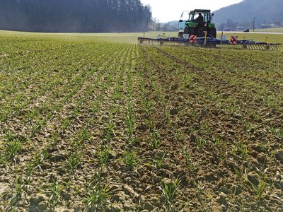 Für die mechanische Unkrautbekämpfung gilt: je früher je besser. Der Striegel ist bei kleinen Unkräutern am effizientesten. Deshalb lohnt sich Blindstriegeln eigentlich immer, auch bei späten Saaten, da die Keimfäden verschüttet und so zerstört werden. Man darf aber nur eingreifen, wenn die Bedingungen gegeben sind – d. h. abgetrockneter Boden, genügende und regelmässige Saattiefe, flaches und nicht zu grobes Saatbeet. Der Zinken muss mindestens 1 cm über dem Korn arbeiten, sonst ist das Risiko für Schäden an der Kultur zu hoch.