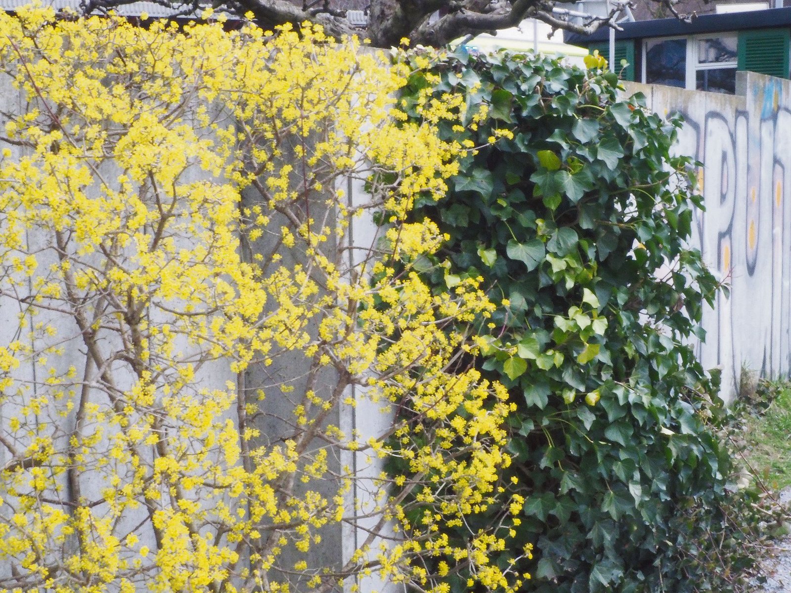 Den Auftakt bei den blühenden Heckenpflanzen machen die einheimischen Kornelkirschen, die in einem frisch dezenten Gelb bereits im März zu blühen beginnen. Die essbaren Früchte können in der Küche verwendet werden. Übrigens gibt es auch grossfruchtige Sorten, die ursprünglich aus Osteuropa stammen. Kornelkirschen lassen sich gut als Formhecke schneiden. Für schrilles Gelb bieten sich Forsythien an, die ökologisch jedoch nichts bieten. Insekten lassen sie links liegen.