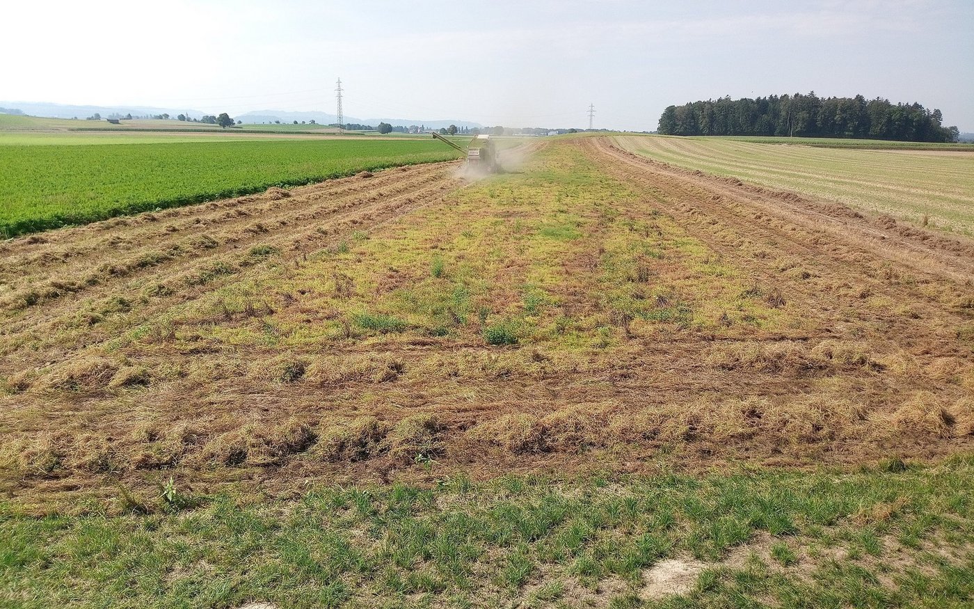 Da die zarten Pflanzen anders als z. B. Getreide mehr liegen als stehen, muss der Mähdrescher tief ansetzen. Ein Bekannter von Simon Hauert übernimmt die Ernte mit einer alten Maschine. «Wichtig ist, dass das Saatbett ganz eben und flach ist», meint der Landwirt. Sonst steige die Gefahr für Verunreinigungen. Eine Charge Linsen habe er schon wegen Sand darin entsorgen müssen.