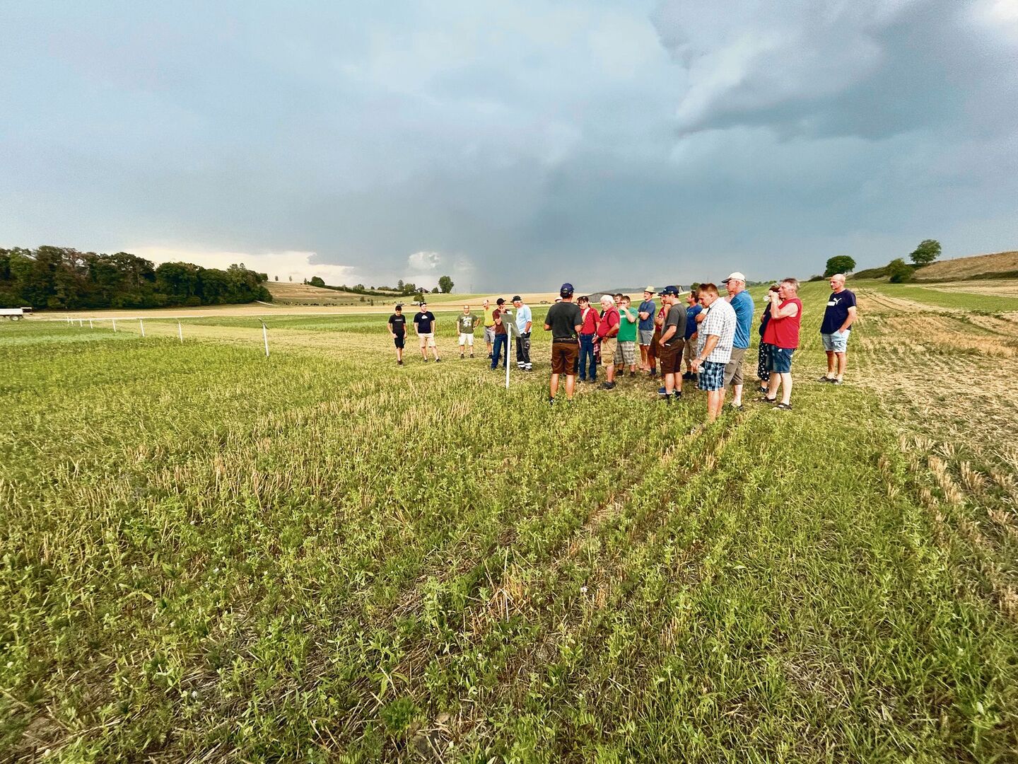 Daniel Iten (GVS) stellte an den Versuchsflächen der Brüder Gysel Gründüngungsmischungen vor, was nebst Direktsaat mit dem System Immergrün ein Hauptpfeiler der Konservierenden Landwirtschaft ist. Lena Heinzer vom Landwirtschaftsamt des Kantons Schaffhausen ergänzte mit den Informationen über den neuen Produktionssystembeitrag «Angemessene Bedeckung des Bodens».