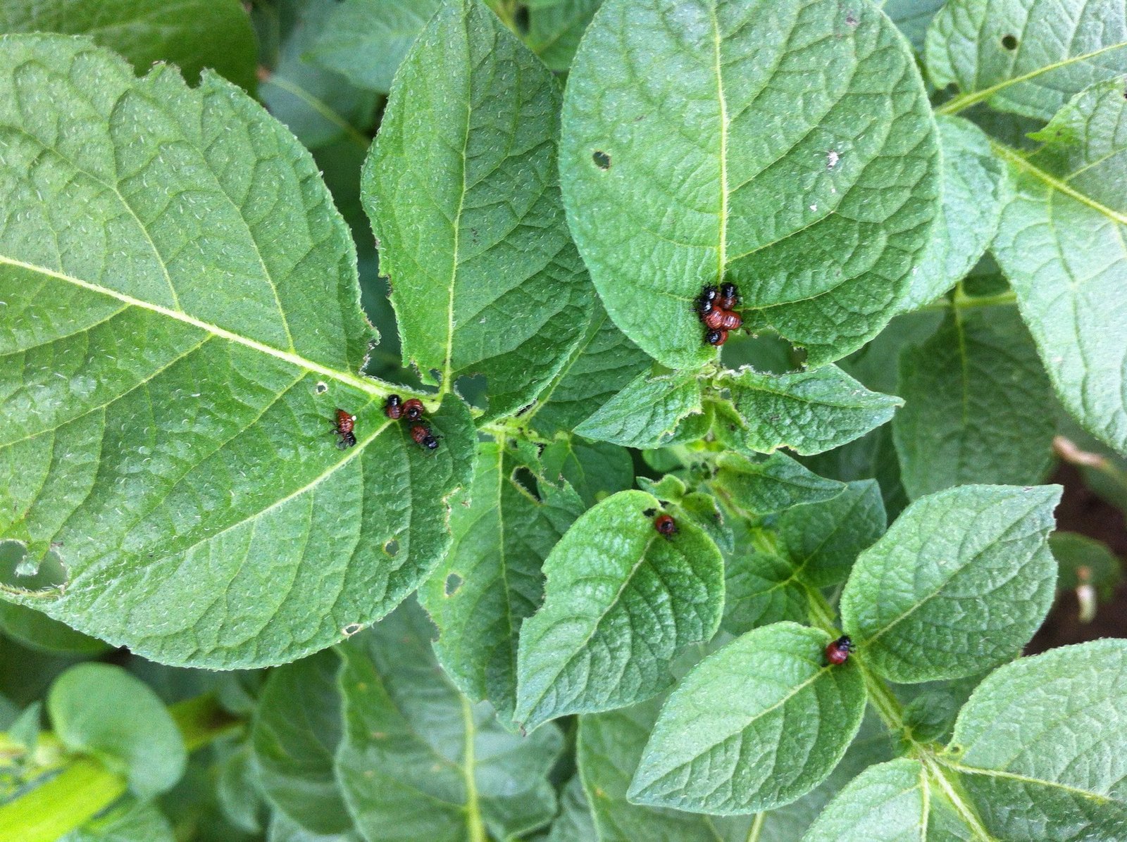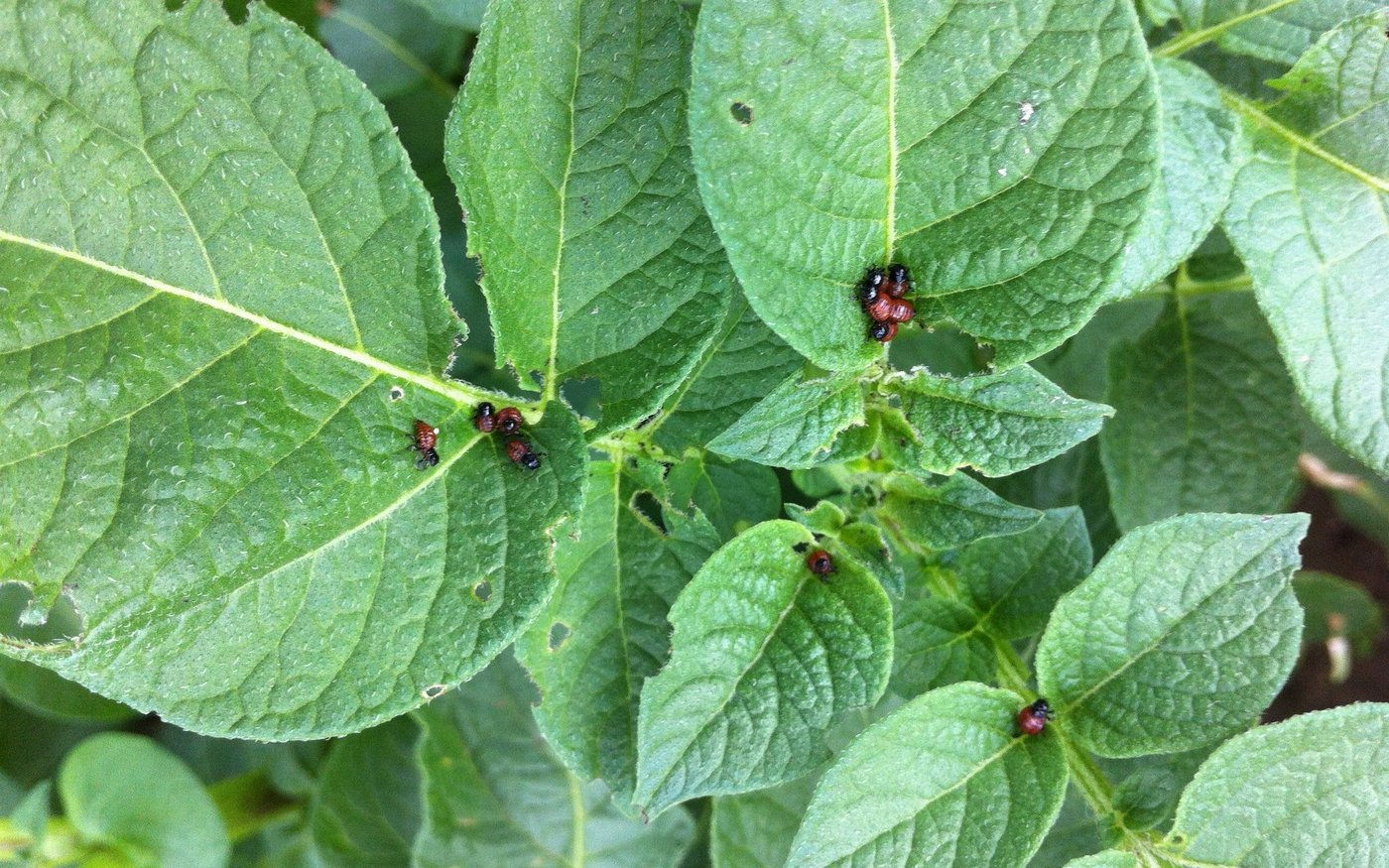 Der Kartoffelkäfer ist vorhanden. Die Käfer legen seit einigen Wochen Eier. Es sollte eine Kontrolle auf zehnmal fünf Pflanzen durchgeführt werden, dabei auch die Blattunterseite betrachten. Die Schadschwelle liegt bei 30 % der Pflanzen mit Larven oder einem Nest pro Are. Spinosad (z. B. Audienz) wird benutzt, wenn möglichst viele Larven geschlüpft und grösser als 5 mm sind. Audienz kann mit Fungiziden gemischt werden und benötigt keine Sonderbewilligung. Alle anderen Insektizide ausser Novodor 3 FC (kleine Larven), oder Neem Azal (kleine Larven) benötigen eine Sonderbewilligung im ÖLN.