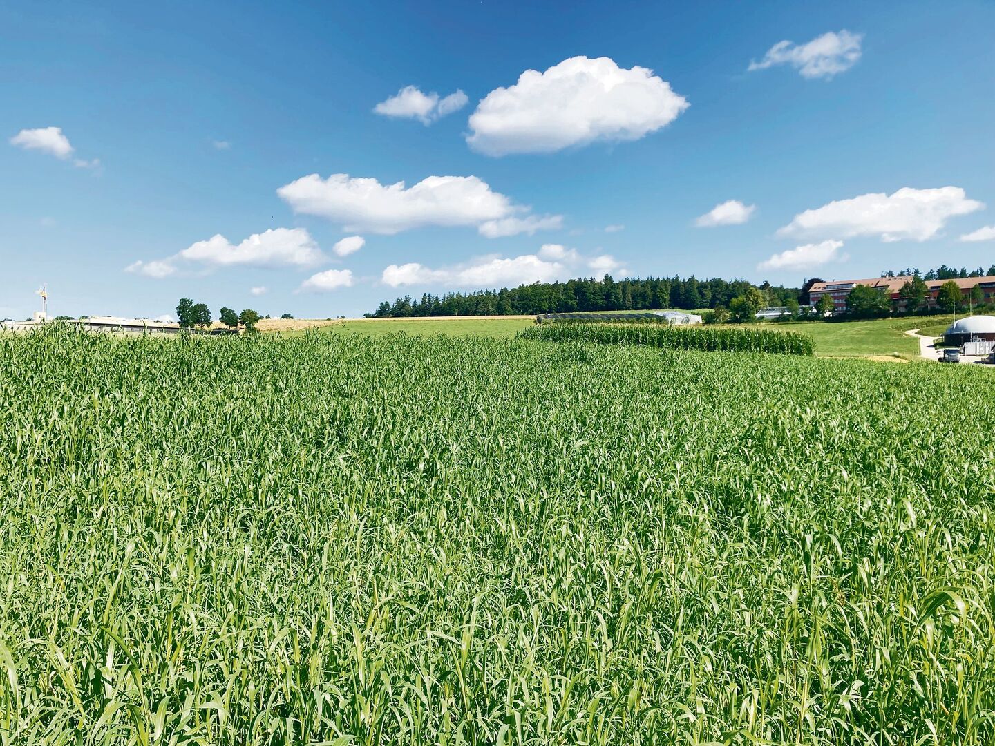 Dieser begann auf einem Feldweg zwischen Mais und beweidbarer Hirse (Sorghum). Als Erstes wurden die aktuellen Versuche und Versuchsresultate, welche im Sorghum laufen, präsentiert und auf artentypische Besonderheiten hingewiesen.