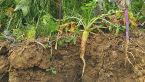 Da braucht es eine differenzierte Betrachtung. Z. T. sind Einsparungen möglich, z. T. braucht es zusätzlich ein Totalherbizid. Auf jeden Fall sind Anpassungen im Pflanzenschutz nötig, mit der möglichst permanenten Bedeckung des Bodens mit Mulchmaterial oder grünen Pflanzen muss man eher auf Kontakt-, statt Bodenherbizide setzen. Mit Hilfe des Systems haben wir aber festgestellt, dass es positive Effekte auf Krankheits- oder Insektenbefall haben kann. So sind z.B. Erdflöhe fast kein Thema mehr weil sie genügend Ablenkfutter an der Oberfläche finden.