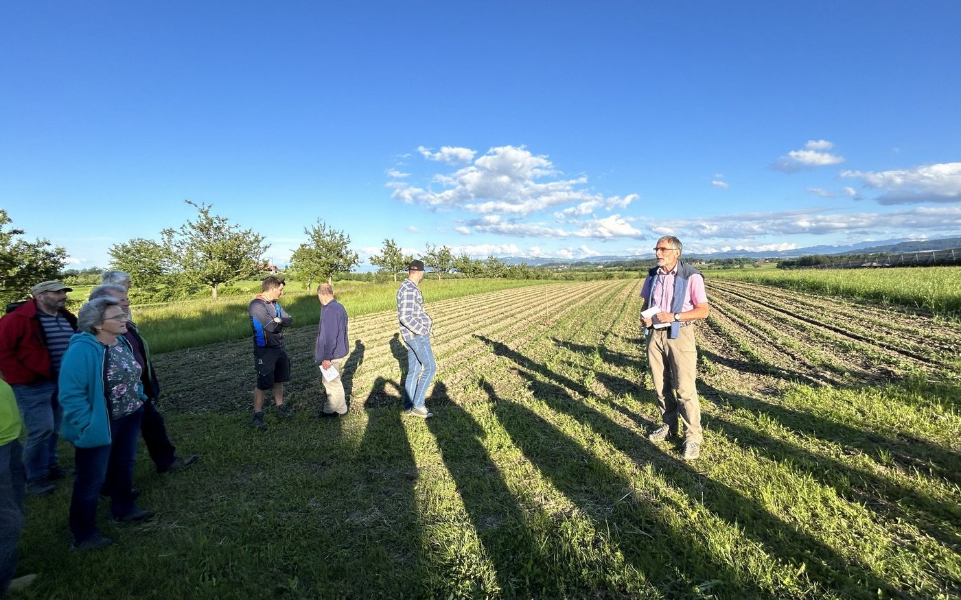 Es kommt relativ selten vor, dass eine Flurbegehung mit einem Jodellied beginnt. Aber so verschaffte sich Jakob Hug mit dem Bietschhorn-Jutz an der Körnerleguminosen-Exkursion Gehör. Hug ist Mitglied der VTL-Kommission Naturschutz, die die Exkursion organisiert hatte. Sein Kommissionskollege ist der frühere Arenenberger Bioberater Jakob Rohrer. Er vertritt in der Kommission den Vogelschutz und leitete den Anlass.