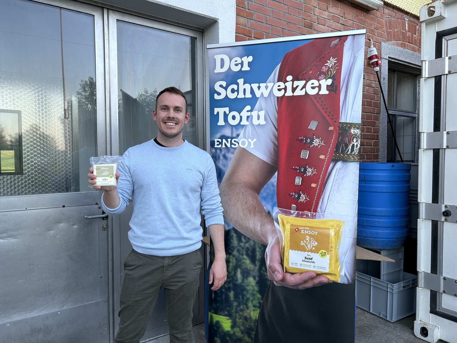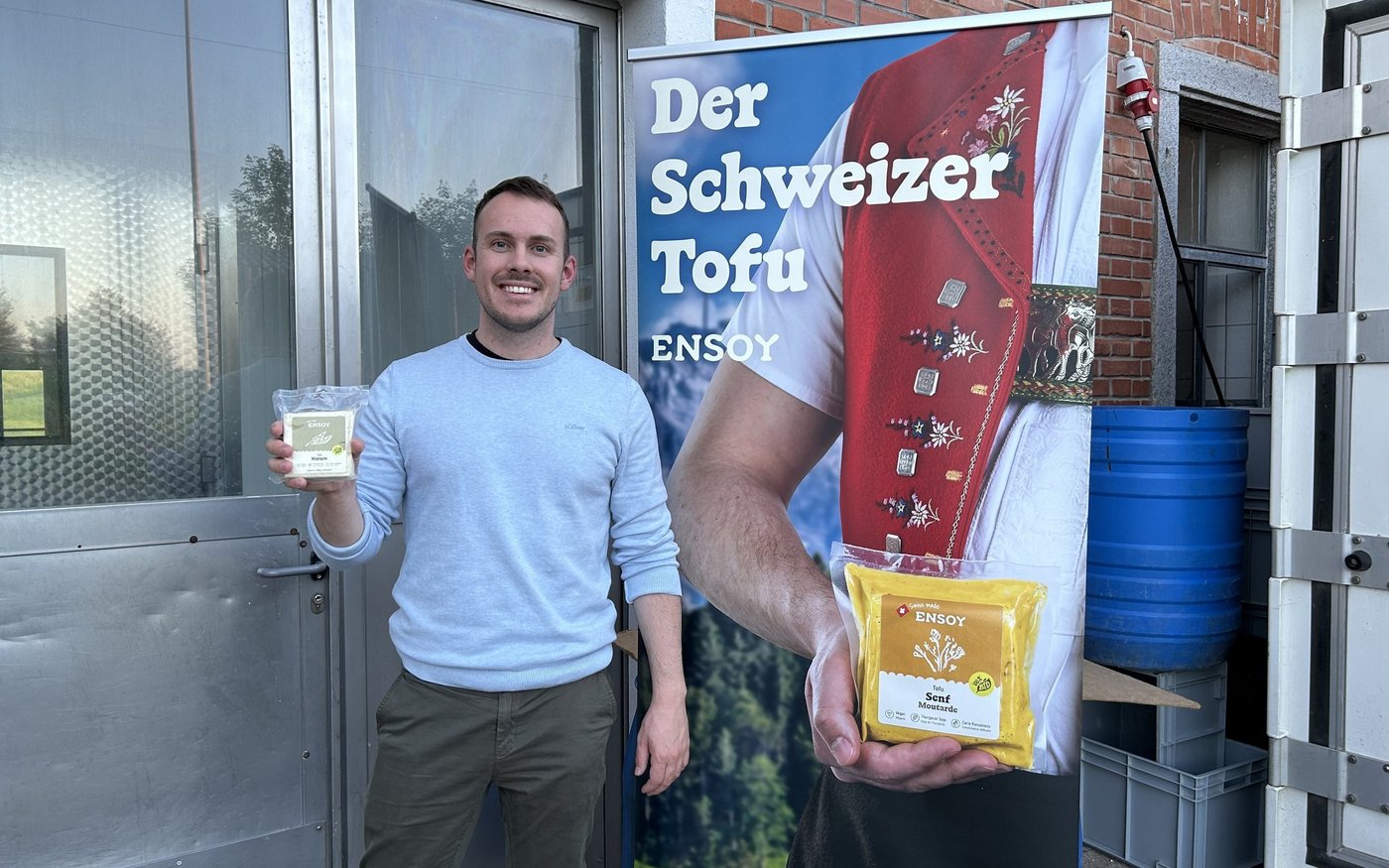 Der zweite Teil der Exkursion führte die Körnerleguminosen-Liebhaber zur Firma Ensoy GmbH ins benachbarte Muolen. Dort kommt ausschliesslich Thurgauer Bio-Knospe-Soja in den Tofu – vor allem vom Seerücken, wie Ensoy-Geschäftsführer Lukas Rösch erklärte. In ihrer Manufaktur, einer alten Käserei, verarbeiten zwölf Mitarbeitende die Sojabohnen. [IMG 5] Das Start-up wurde 2021 gegründet und konnte den Output von anfänglich 160 kg Tofu auf heute 5 t pro Monat steigern. Abnehmer sind kleine Detaillisten, die Gastronomie und Hofläden. Zurzeit ist Ensoy-Tofu auch im Migrosregal zu finden. «Braten, grillieren, backen, kochen – mit Tofu ist alles möglich», sagte Rösch.