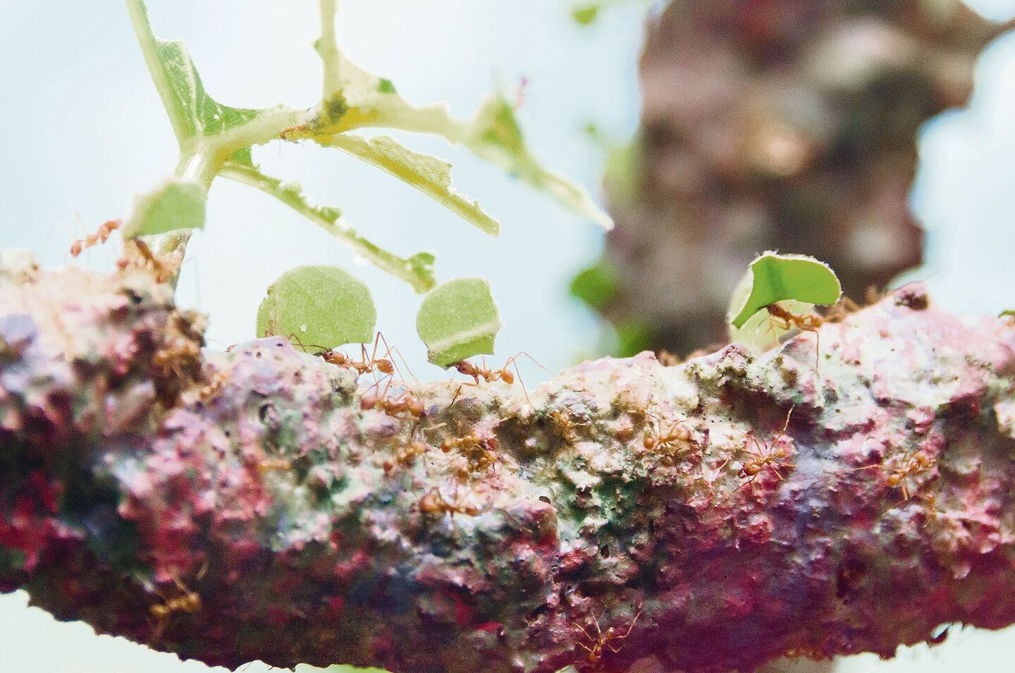 Als mich der frühere Biologielehrer meiner älteren Tochter und langjähriger Freund Fredi Strasser kontaktierte, berichtete ich ihm von unserem Ameisenproblem. Ein Pionier wie er stürzte sich sogleich in die Recherche und kurze Zeit später lieferte er mir eine bisher unbekannte Alternative – das Pflanzen von Ameisenbäumen. Sie gehören zu den Brennnesselgewächsen, zu denen etwa 61 Arten zählen und haben die Eigenschaft, eine Symbiose mit den «guten» Ameisen einzugehen. Also jene Ameisen, welche in der Schweiz als Putzequipe des Waldes bekannt sind und den lebenden Pflanzen keinen Schaden zufügen. Diese Roten Ameisen leben in den schnell wachsenden Ameisenbäumen, deren Stamminneres ähnlich dem Bambus hohl ist. Sie pflegen den Baum bei Verletzungen und, das ist nun entscheidend, wehren die «böse» Schwarze Ameise ab.