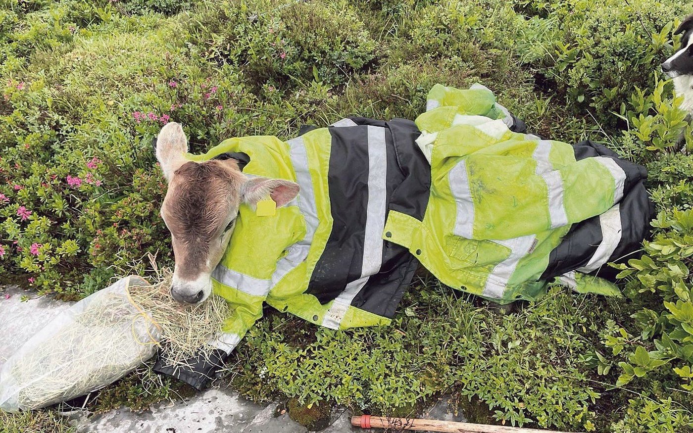 Am nächsten Morgen um 6.30 Uhr zogen mein Bruder und ich los, um die Patientin zu betreuen. Diese war einigermassen heil auf, jedoch fanden wir beim Rückweg bereits das nächste Kalb in einem Loch. Und ein weiteres war zirka vier Meter die Felswand hinuntergestürzt.