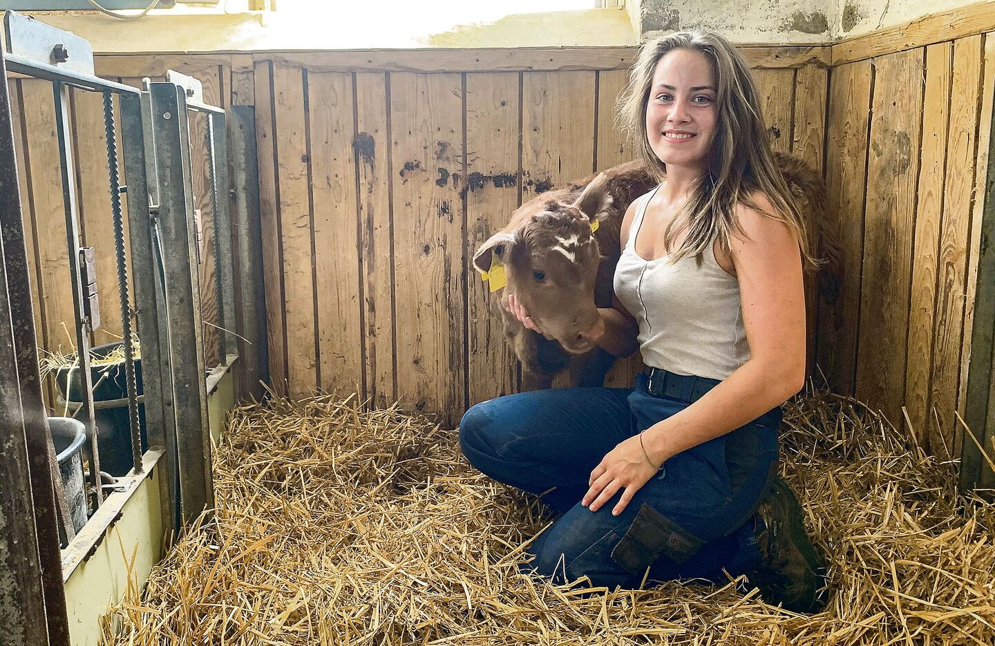 Selten, aber doch gibt es Zeiten, in denen ich allein auf dem Lehrbetrieb bin. So kam es an einem Dienstagnachmittag zu einem schönen Erlebnis. Als ich die Kühe in den Stall brachte, ist mir aufgefallen, dass die eine Kuh, die in wenigen Tagen kalbern sollte, sehr nach einer baldigen Geburt aussah. Ich telefonierte kurz mit meinem Chef, um ihn darüber zu informieren. Er meinte, ich sollte ihn auf dem Laufenden halten. Ich war schon bei mehreren Geburten dabei, aber nur als Gehilfin. Bei einem weiteren Kontrollgang sah ich, dass die Vorderbeine und der Anfang des Kopfes schon hervorschauten. Auf einmal ging alles sehr schnell. Ich versuchte meinen Chef zu erreichen, doch zufälligerweise nahm er nicht ab. So war ich auf mich allein gestellt. Gleichzeitig begann die Kuh zu pressen und ich wusste, ich muss alles, was ich bis jetzt gelernt hatte, auf eigene Faust anwenden. Zum Glück verlief alles einwandfrei. Es war eine wundervolle, erste alleinige Geburt.