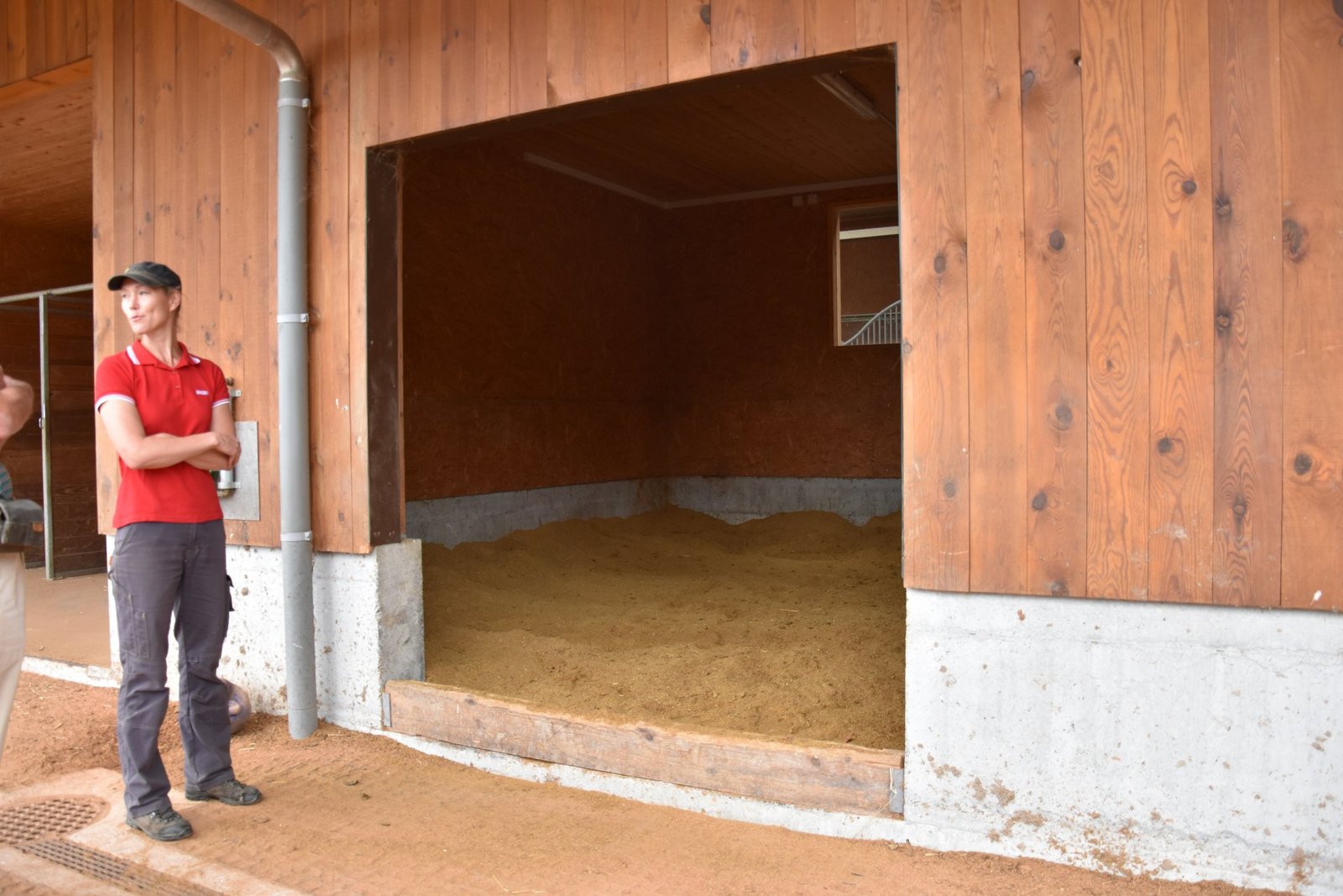 Speziell am Stall von Romy Schaad sind die Weiden, die direkt von jeder Einzelbox ausgehen. Der Auslauf ist mit Comfortex-Matten ausgestattet und die Pferde stehen bei Regen, Hitze und Hagel unter dem grossen Vordach des Auslaufbereichs und bevorzugen den Vorstand gegenüber dem Innenbereich, beobachtet Schaad. «Pensionäre, die ihre Pferde nur eine Stunde rauslassen möchten, will ich nicht auf meinem Betrieb», sagt Romy Schaad selbstbewusst. Die Landwirtin spricht nicht nur von einer tiergerechten Haltung – sie lebt sie. Eine Pensionärin reist jeweils sogar vom Kanton Luzern an. Mindestens einen halben Tag, oder lieber so viel es geht, sollen ihre Pferde auf die Weide und ihr soziales Verhalten ausleben können, ist sie überzeugt. Bei der Gruppenhaltung ist das Fenster des Liegebereichs so platziert, dass die Pferde nicht gestört werden, wenn jemand den Gang dahinter passiert.