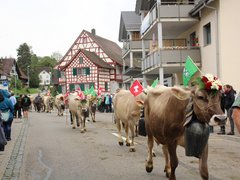 In einigen Bauernbetrieben scheint sich eine eigene Tracht entwickelt zu haben, mit Edelweisshemden und schwarzer Zipfelmütze oder mit Jacken mit der Aufschrift vom Hof. Bei allen war generationenübergreifend Berufsstolz und Traditionsbewusstsein zu spüren. Grosse und kleine Zuschauer, Familien mit Grosseltern und Kinder, alles schien auf den Beinen, denn an die im Thurgau noch einzige Viehschau, da geht man einfach und begleitet die Tiere bis hinauf zum Schauplatz.