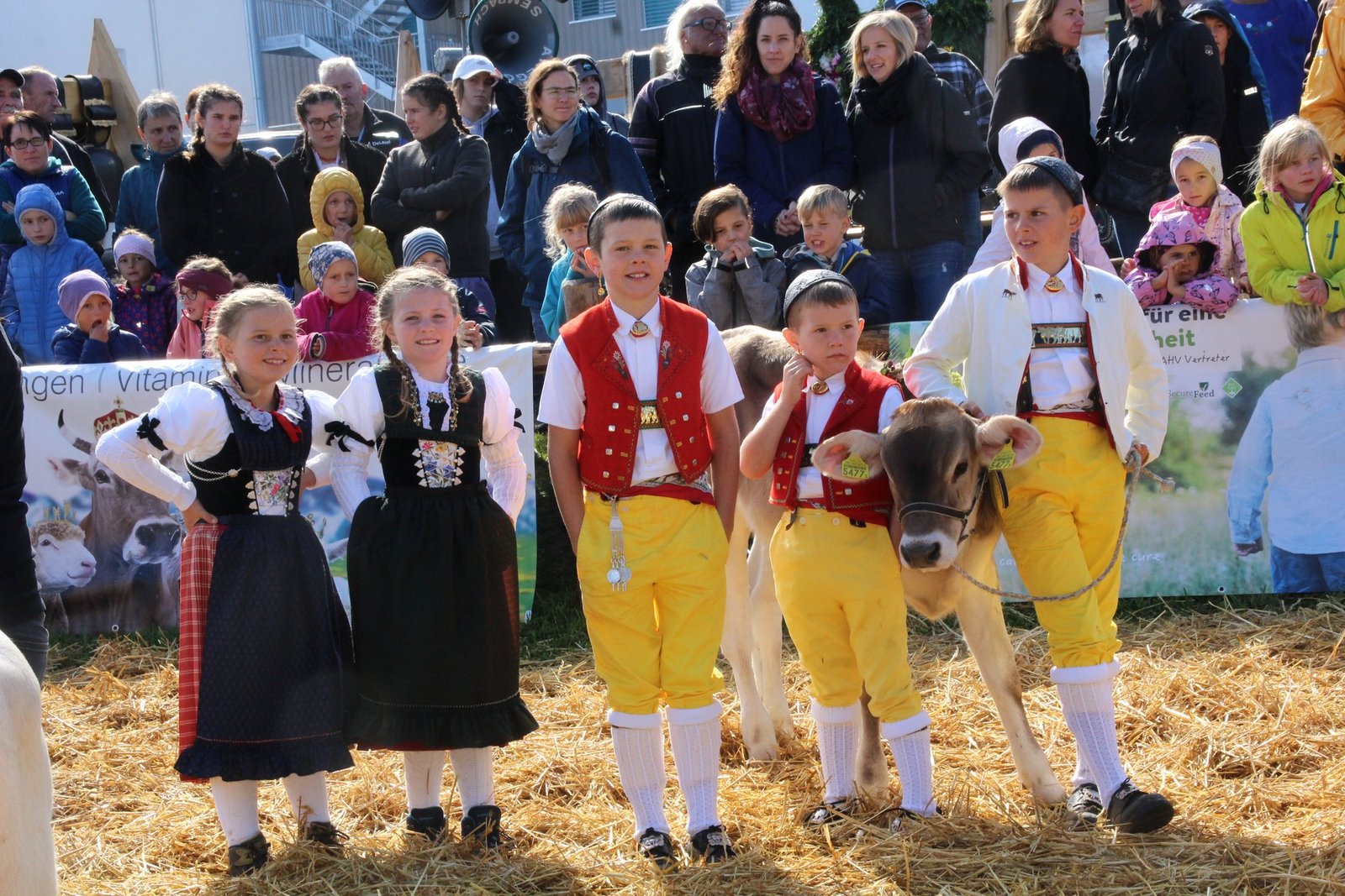 Besonders herzig war der Jungzüchterwettbewerb an dem Kinder ihre Kälbchen im Ring vorführen durften. Mit Sprüchlein, einem Juchzer oder gar einem Lied stellten sie sich und ihre Tiere vor. Als Preis bekamen alle ein Glöcklein und ein T-Shirt. Wendelin Kuster, Präsident des Braunviehzuchtvereins Schönholzerswilen und Umgebung und OK-Präsident der Viehschau, freute sich sehr, dass so viele Junge mitmachen, die Tradition der Viehschau hochhalten und auch sonst im Verein aktiv mitwirken: «Damit zeigen sie Bauernstolz und Freude am Beruf.»