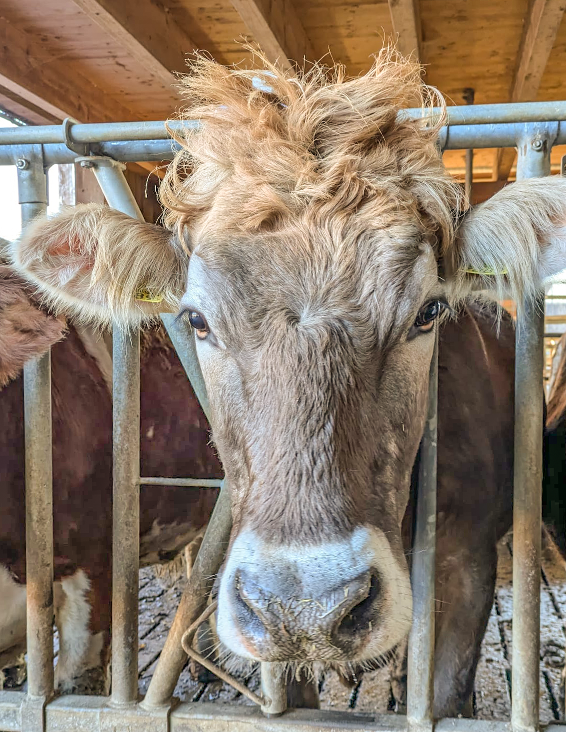 So habe sie den Spitznamen «Strubeli» erhalten, auf den sie nun ebenfalls reagiert, wenn man ihr ruft. Das Spezielle sei ausserdem, dass ihr Kalb Lulu genau dieselbe Haarstruktur, Haarlänge und Fellfarbe habe. Das zweite Kalb, das Lina bereits hat, sehe hingegen nicht annähernd so aus wie das Muttertier – weder in Sachen Frisur noch die Fellstruktur. «Beim Stierkalb von Lina sind definitiv die Gene des Vaters durchgekommen», erzählt Lüscher.