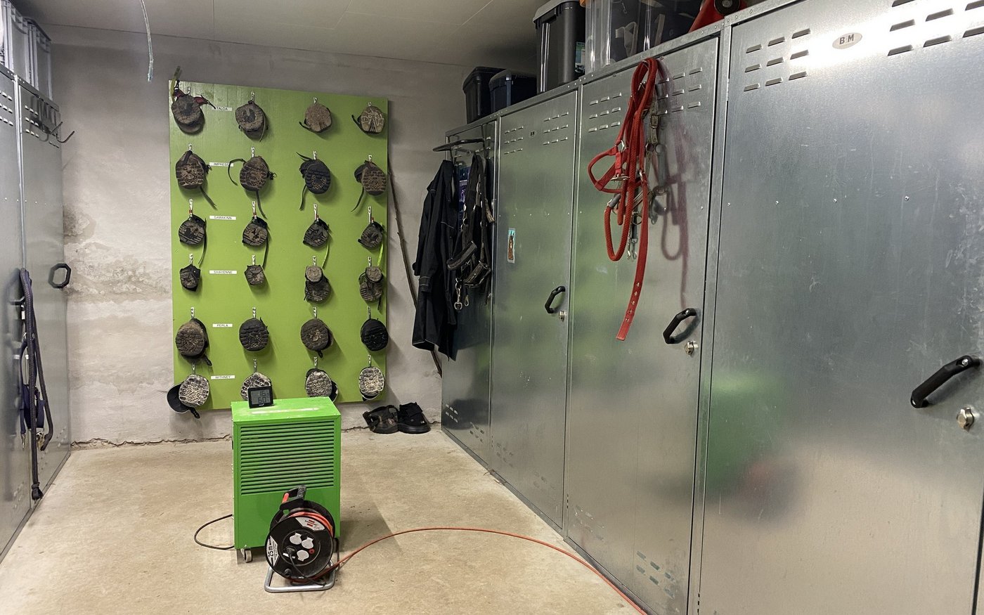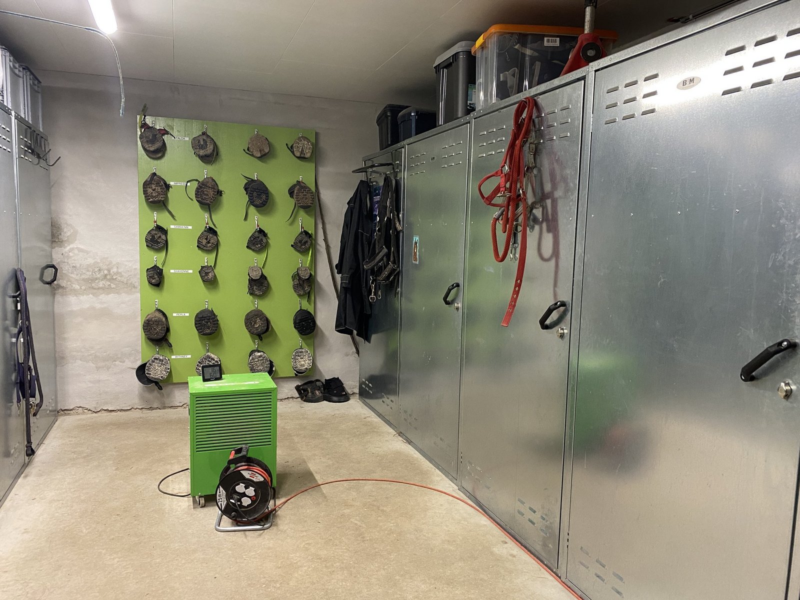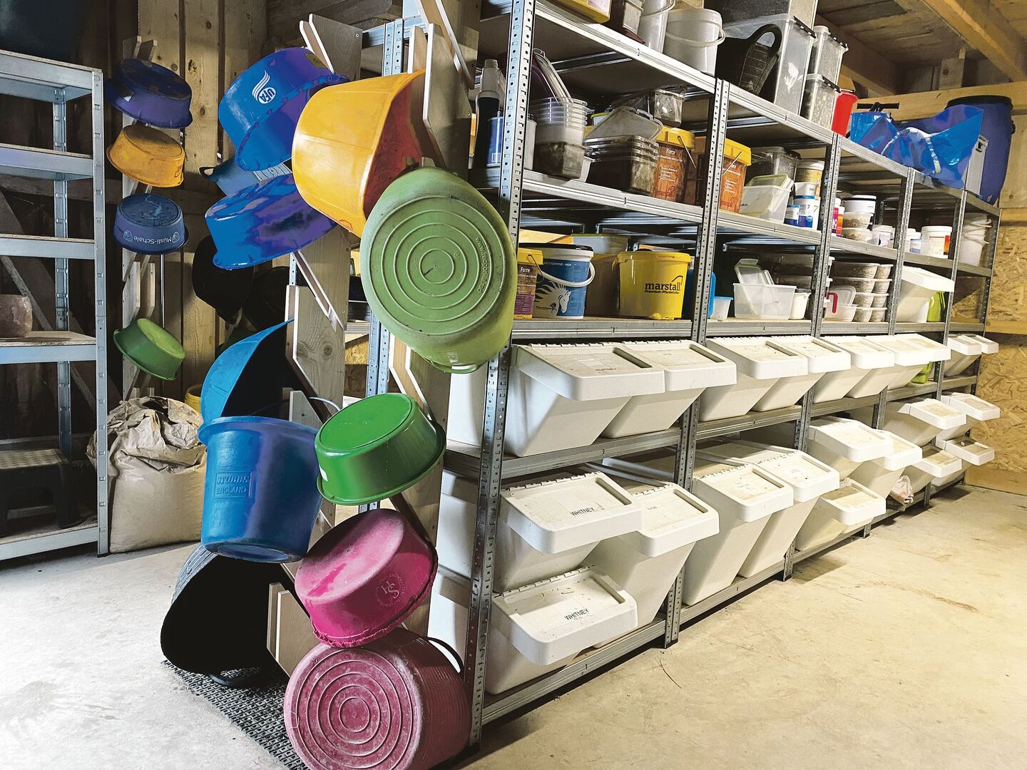Wenn Gabi Winistörfer die Pensionspferde ruft, die sie morgens zu füttern hat, kommen nur diejenigen, die sie auch ansprechen will. «Die anderen kehren sich nicht einmal um», sagt Gabi Winistörfer in der Fütterungskammer, fast selber ein bisschen erstaunt, wie gut das System funktioniert. Von den 18 Pferden, die sie im zwei Jahre alten Pensionsstall unterbringt, füttert sie am Morgen sieben selber, die anderen werden von den Pensionär(innen) selbst versorgt. «Das funktioniert gut», sagt Gabi und zeigt auf die ordentlich gestapelten Tupperware-Behälter, worin für jedes Pferd die spezifische Mischung bereit steht.