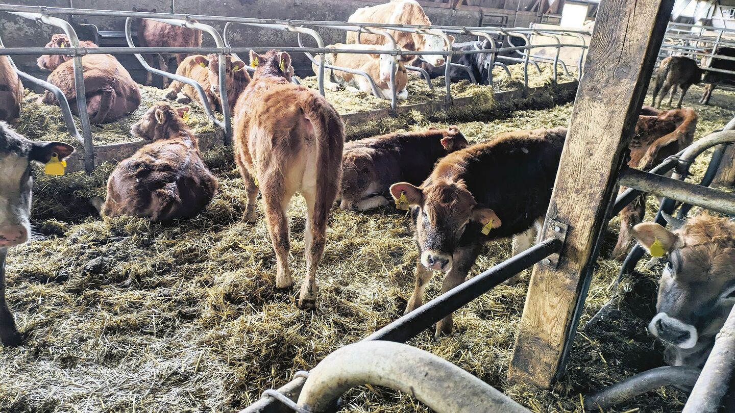 Daher wird bei uns die Abkalbebox dreimal täglich vom Kot befreit und zweimal eingestreut. Damit versuchen wir, unsere Kälber vor Krankheiten zu schützen. Der Kälberschlupf befindet sich bei uns in der Mitte des Stalls, schön trocken und windstill. Hier können sich die Kälber frei bewegen und haben ihre Ruhe von den Kühen. Da es hier keinen Spaltenboden hat, treten die Kälber ihren Kot ins Stroh und vermischen alles. Daher ist es notwendig, täglich frisches Stroh zu verteilen.[IMG 2]