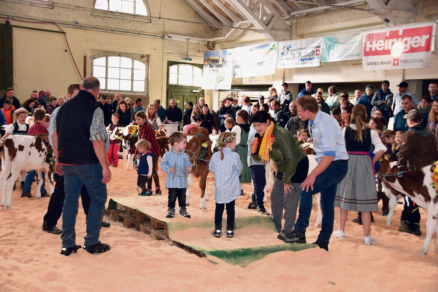 Es ist bekannt, dass der Kälberwettbewerb immer wieder viel Publikum anzieht, das war auch in Langenthal nicht anders: Im Ring tummelten sich sicher 30 Kälber oder mehr. Dabei wollte die Nationalrätin Christine Badertscher vom Jungzüchternachwuchs doch das eine oder andere wissen und fragte zum Beispiel: Wie viel Milch denn das Kalb trinke oder wie das Kalb denn heisse.