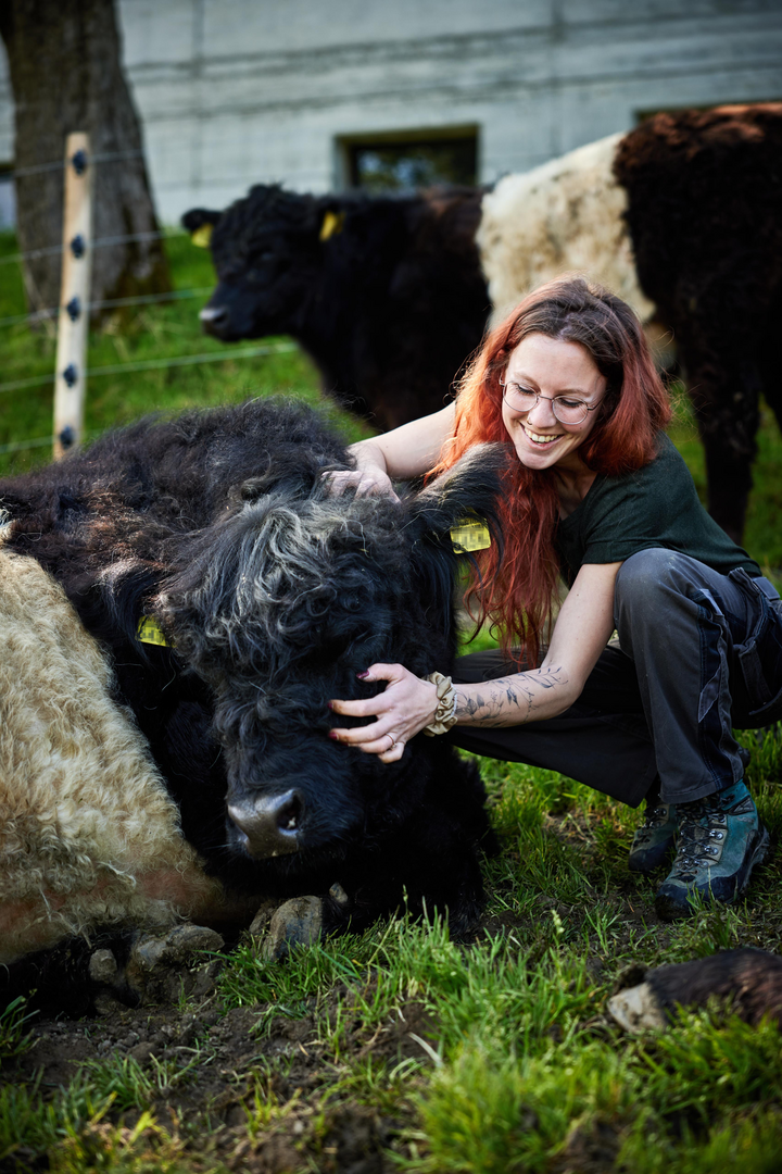 Mir ist gleich Jellybean in den Sinn gekommen», sagt die gelernte Floristin Lisa Rothenbühler auf die Frage nach einer speziellen Kuh in ihrem Stall. Nach der Ausbildung zur Floristin absolvierte sie auch noch die Ausbildung zur Landwirtin, die Betriebsleiterschule und ist nun Meisterlandwirtin, worauf sie schon ein wenig stolz sei, so Rothenbühler. Gemeinsam mit ihren Eltern Daniela und Jürg Rothenbühler führt sie in Rüderswil BE einen Biohof mit Mutterkuhhaltung. Im Stall stehen Galloway und eine kleine Herde Schwarznasenschafe, zwei Ziegen und drei Ponys.