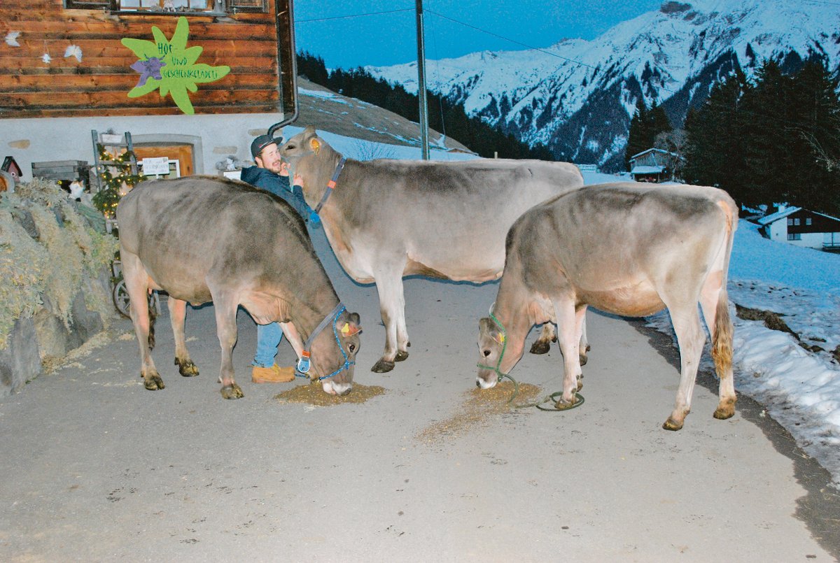 Meiers wollten das Tier nicht schlachten, denn «Fasca ist ein rundum hübsches Tier», wie Meier in breitem Prättigauerdialekt erzählt. «Sie gefällt uns so gut und ist als Gesamtpaket so stimmig, dass wir sie zur weiteren Zucht brauchen wollten.» So hat Fasca mittlerweile drei Töchter: Salomon Sarina, Lennox Lucy und ein neues, erst wenige Tage altes Kuhkalb namens Palmer Parma. Auch Salomon Sarina hat zu Meiers grosser Zufriedenheit vor einem knappen Monat ein Kuhkalb geboren. «Sarina erinnert mich an ihre Mutter Fasca. Ich glaube, die wird es noch weit bringen», freut sich Meier und sein Sohn pflichtet bei: «Auch mit Fasca selber werden wir noch ein paar schöne Momente erleben!»
