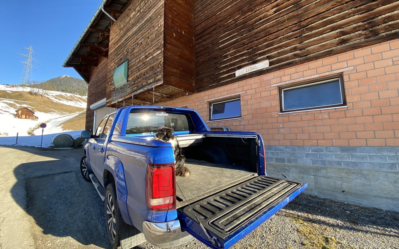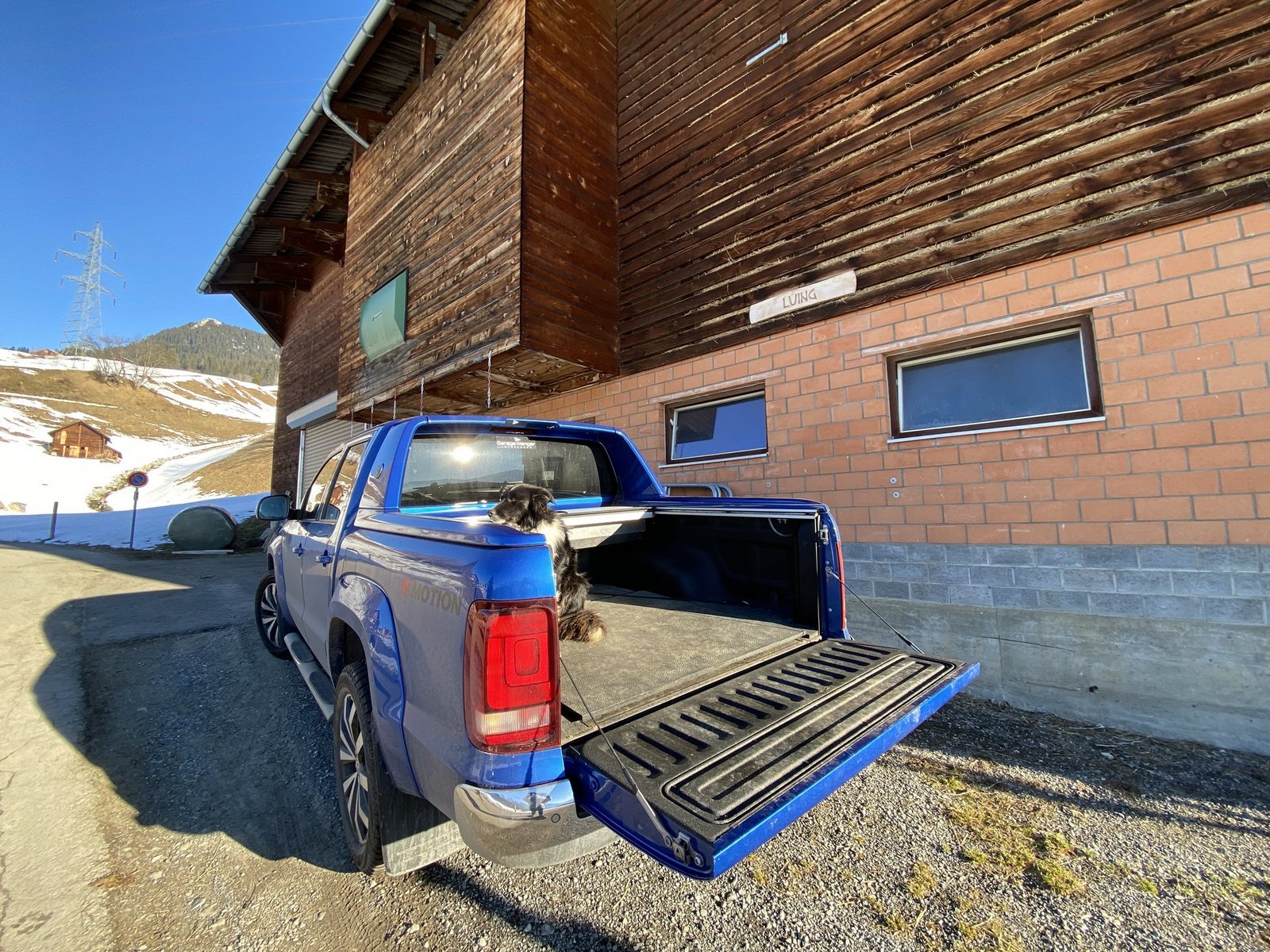 Ob im Stall oder auf der Weide, immer im Schlepptau des Bio-Bauern ist Border-Collie Chaemp. Seine Artgenossen mögen andernorts Schafe treiben, Chaemps Herde sind die Luing-Mutterkühe. Damit er sich nicht unbemerkt nähern und sie erschrecken kann, trägt der Hund eine kleine Glocke um den Hals. So an den Vierbeiner gewöhnt, reagieren die Luing auch auf die Hunde von Spaziergängern während der Sömmerung nicht mit Aggression.