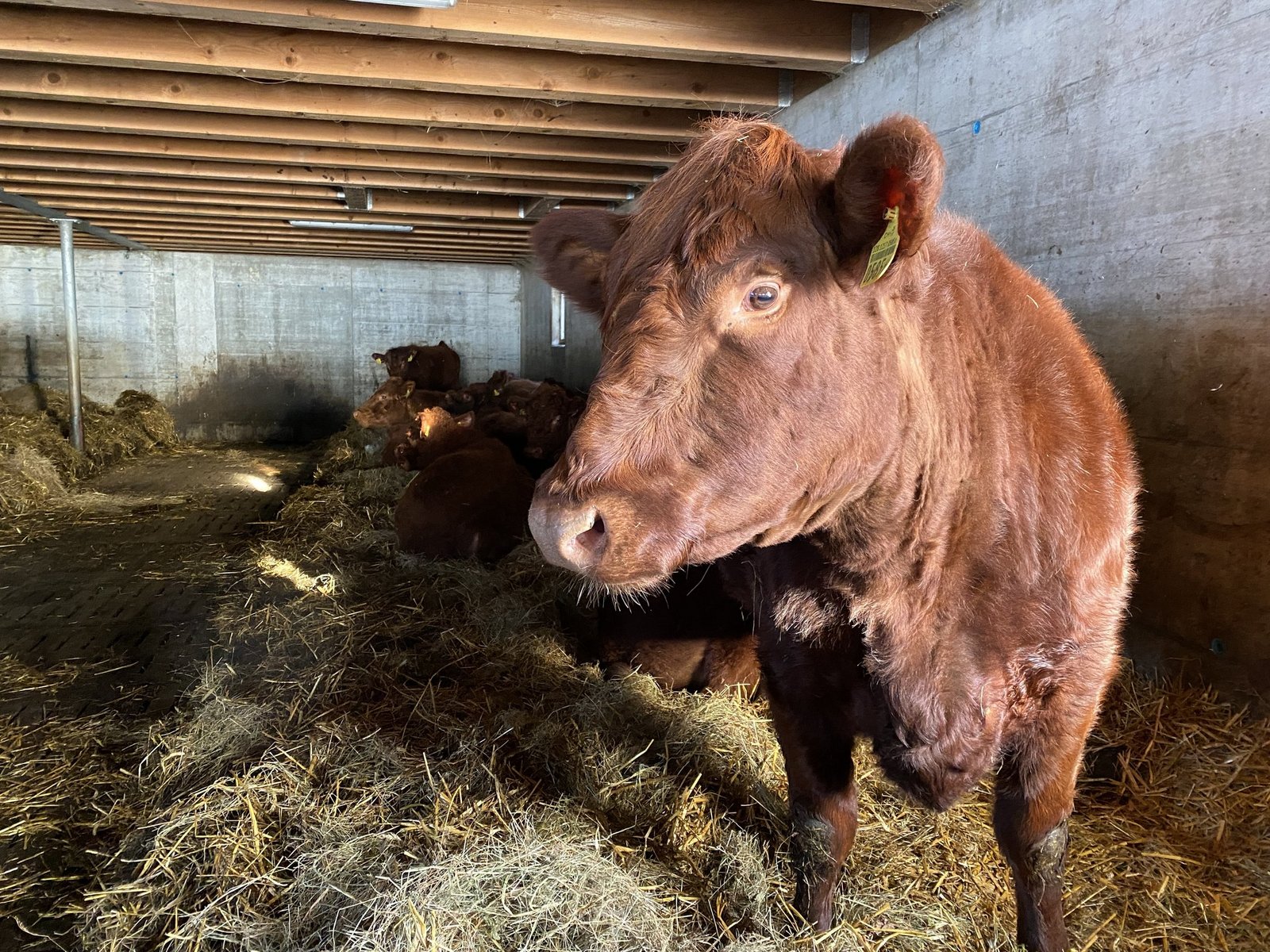 Manche 10-jährige Kuh sei bei ihm noch nie in einem Klauenbehandlungsstand gelandet, sagt Andreas Moor nicht ohne Stolz. Er führt das einerseits auf die robuste Rasse zurück, andererseits auch auf sein Stallsystem: Die Tiere liegen auf dicken Matratzen aus Tretmist. «Ich habe andere Ställe besucht und bei Liegeboxen standen die Kühe im Feuchten», schildert er. in seinem eigenen Stall ist der Liegebereich zum Stallgang hin leicht abschüssig, so arbeiten die Kühe das Material langsam nach vorne und Moor füllt wandseitig frisches Stroh nach. «Ich muss zwar grössere Mengen Stroh zukaufen. Dafür spare ich die Kosten für kranke Klauen, weil sie nicht aufweichen», ist der Landwirt überzeugt.