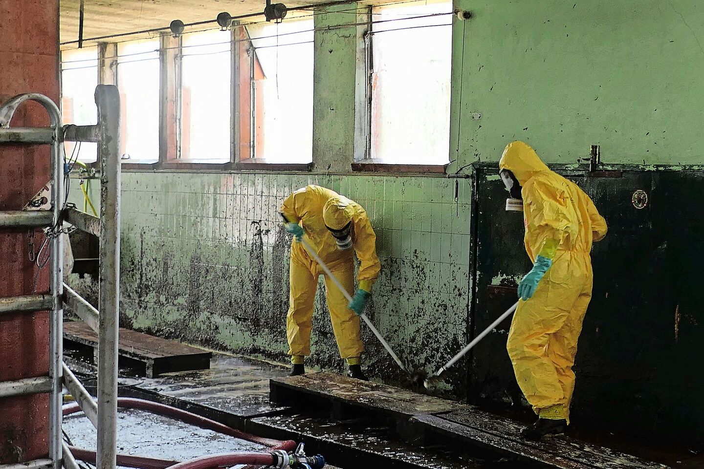 Der Milchviehstall auf dem Eichhof in Oberneunforn TG war komplett leergeräumt. Dennoch herrschte Betriebsamkeit. Zivilschützer in Schutzanzügen und Atemschutzmasken spritzten mit Hochdruckschläuchen sämtliche Oberflächen ab und schrubbten auch die letzten Reste Schmutz weg. Und nicht nur Dreck.