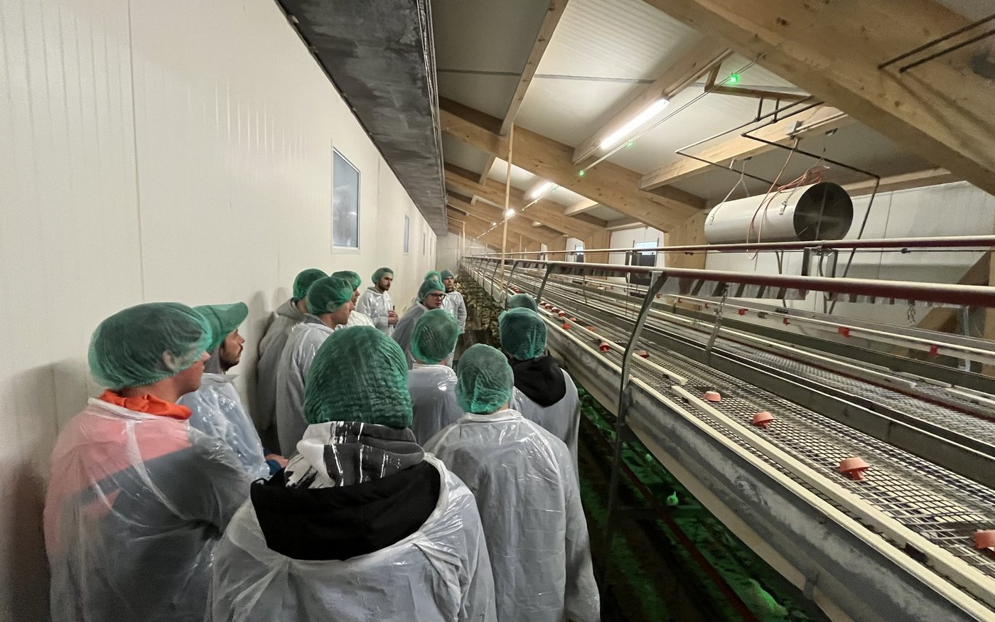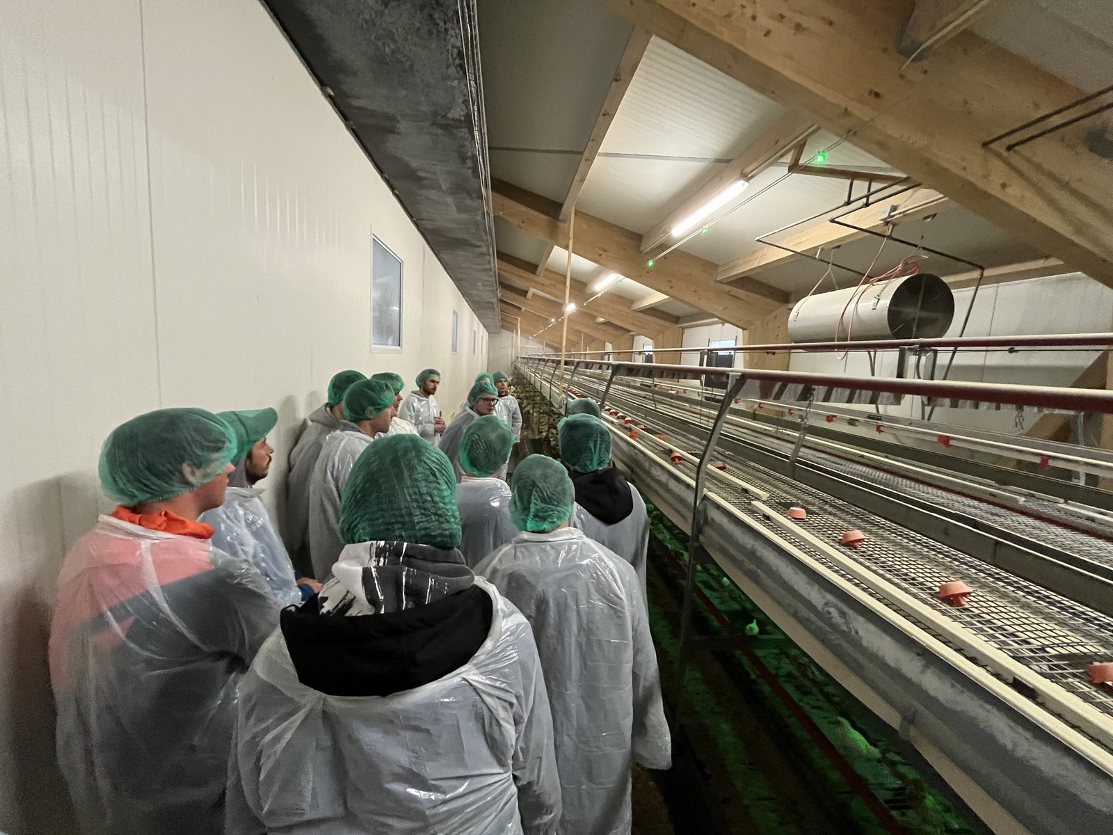 Wir waren auf einem Betrieb, der einerseits Legehennen und andererseits Aufzuchthühner hält. Es ist ein Neubau mit den neuesten hygienischen und arbeitswirtschaftlichen Standards. Beim Stallbau gibt es viel zu beachten. Ein Beispiel: Die Futtersilos befinden sich im Aussenklimabereich, damit die Sonne nicht direkt darauf scheint und es kein Kondenswasser gibt.