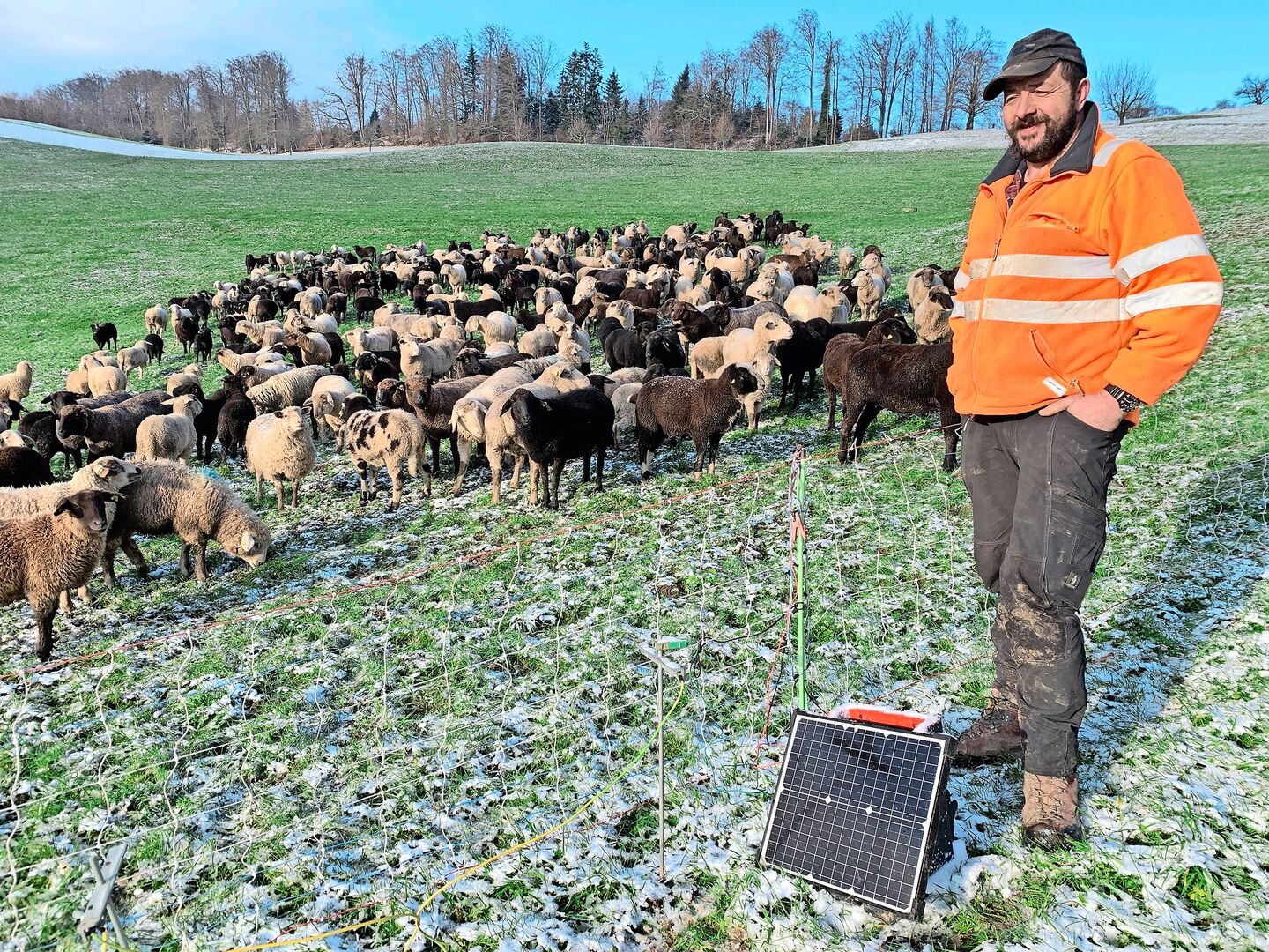 Beim Besuch an einem sonnigen Samstagmorgen, bei leicht schneebedeckten und gefrorenen Böden, werden die Schafe auf Wiesen in der Region Adligenswil um den Dietschiberg und Dottenberg geweidet. Die Bauern seien froh darum, und das sei eine Win-win-Situation, sagen Stadelmann und Landwirt Adrian Schryber vom Dalacheri oberhalb des Dorfes Adligenswil. Schryber führt zusammen mit seinem Vater in Generationengemeinschaft einen Betrieb mit Milchwirtschaft, Mastschweinen und Mastpoulets. Letzten Herbst konnte Schryber wetterbedingt viele Weiden nicht mehr nutzen, das viele ältere Gras schätzen nun die Schafe. «Allerdings machen wir keinen Rasenteppich, sondern überweiden nur», sagt Stadelmann. Zweimal täglich kommen die Tiere in eine neue Koppel. Am besten sei für Schafe abgefrorenes Gras auf Winterweiden, dann seien die Nährwerte und die Struktur besser, es brauche weniger Mineralstoffe und es gebe weniger «Dünnschiss» als bei wassergesättigtem Gras.