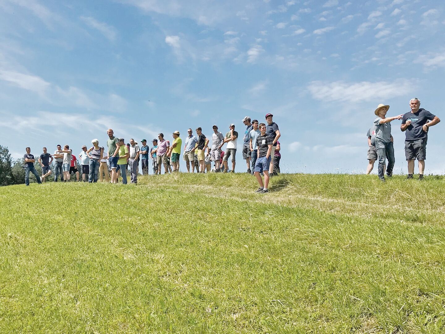 Sehr steile Flächen, in Kombination mit Vollweide und einem Melkroboter – so lässt sich die Milchviehhaltung auf dem Betrieb von Kilian und Ignaz Aregger in Willisau beschreiben. Diese natürlichen Voraussetzungen, erfolgreich mit ihrer Betriebsstrategie umgesetzt, waren das Thema der gut besuchten Sommertagung 2022 der IG Weidemilch.