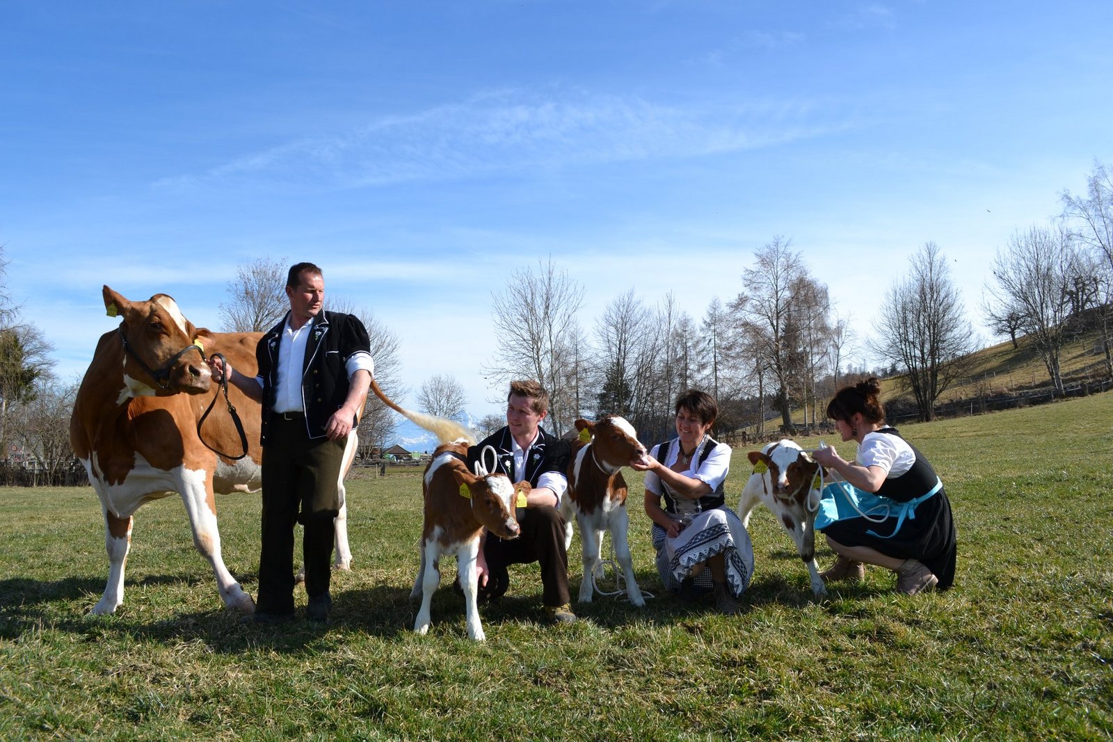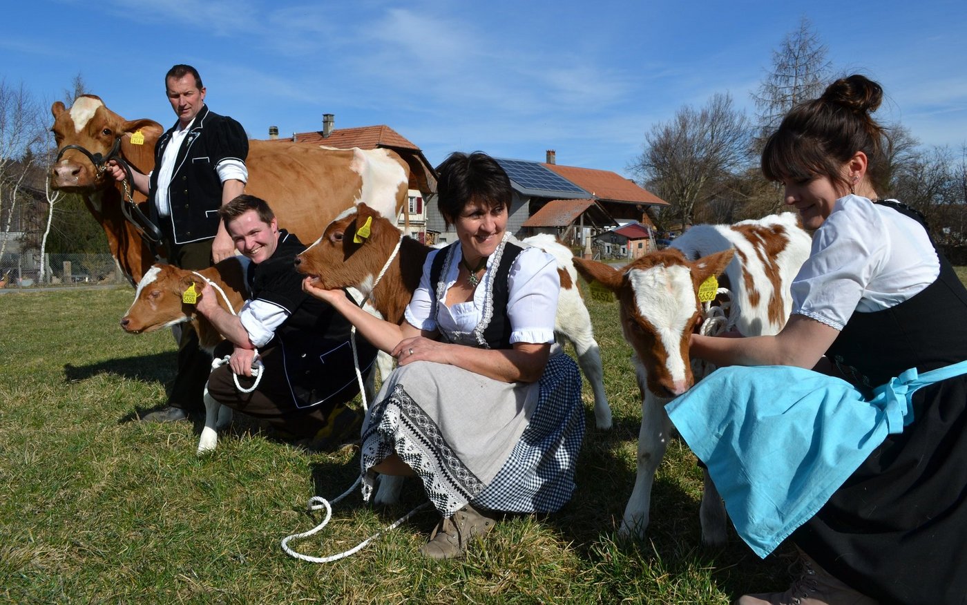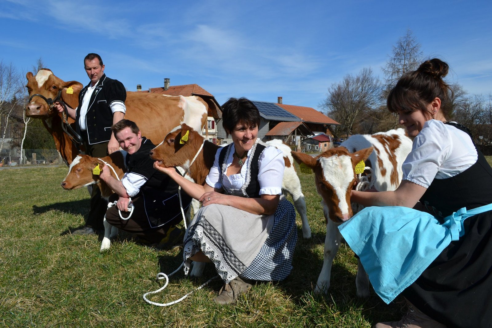 «Unsere Kuh Idylle und die Drillinge hatten wir alle im Whatsapp-Status», erklärt Elisabeth Brönnimann stolz in der Küche der aufgestellten Familie, die in Riggsiberg lebt. An den Radiator gelehnt erzählt die 50-jährige Bäuerin aufgeregt vom Glücksfall im Stall von Brönnimanns. Sie schnürt ihre Tracht zurecht und erzählt fröhlich von der schönen Idylle und den Kuhkälbern weiter, als Tochter Andrea dem Geschehen in der Küche beiwohnt. Die junge Drogistin hatte Idylle als Kuhkalb zu ihrem 20. Geburtstag erhalten. «Der vorherige Besitzer hatte uns wohl das beste und schönste Kuhkalb verkauft, ohne es zu wissen», sagt sie und schmunzelt, ebenfalls in eine Tracht gekleidet.