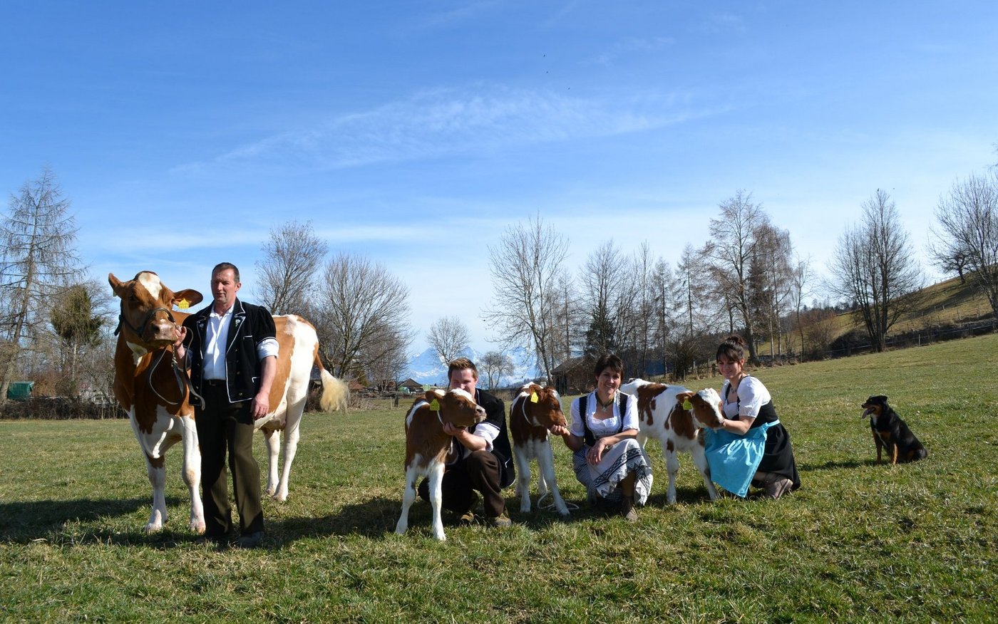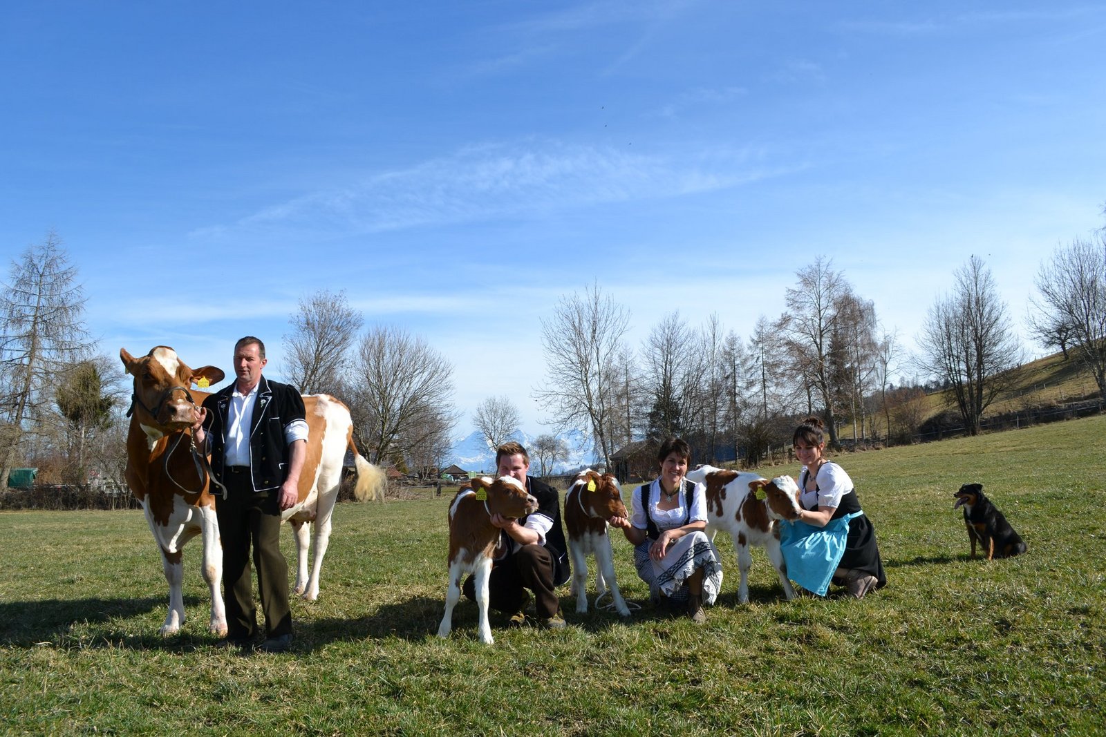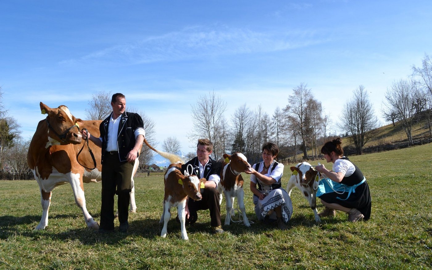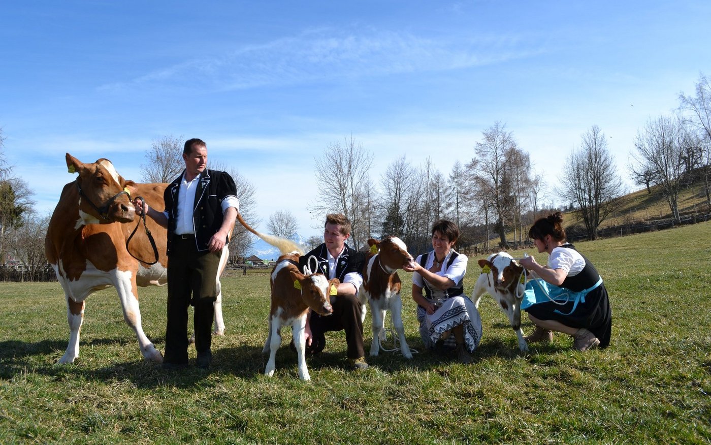 «Unsere Kuh Idylle und die Drillinge hatten wir alle im Whatsapp-Status», erklärt Elisabeth Brönnimann stolz in der Küche der aufgestellten Familie, die in Riggsiberg lebt. An den Radiator gelehnt erzählt die 50-jährige Bäuerin aufgeregt vom Glücksfall im Stall von Brönnimanns. Sie schnürt ihre Tracht zurecht und erzählt fröhlich von der schönen Idylle und den Kuhkälbern weiter, als Tochter Andrea dem Geschehen in der Küche beiwohnt. Die junge Drogistin hatte Idylle als Kuhkalb zu ihrem 20. Geburtstag erhalten. «Der vorherige Besitzer hatte uns wohl das beste und schönste Kuhkalb verkauft, ohne es zu wissen», sagt sie und schmunzelt, ebenfalls in eine Tracht gekleidet.