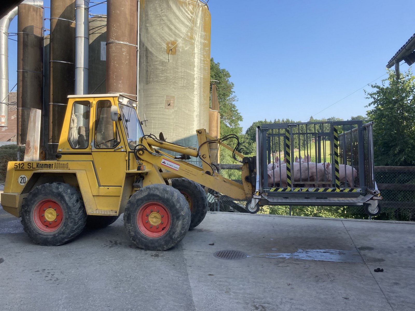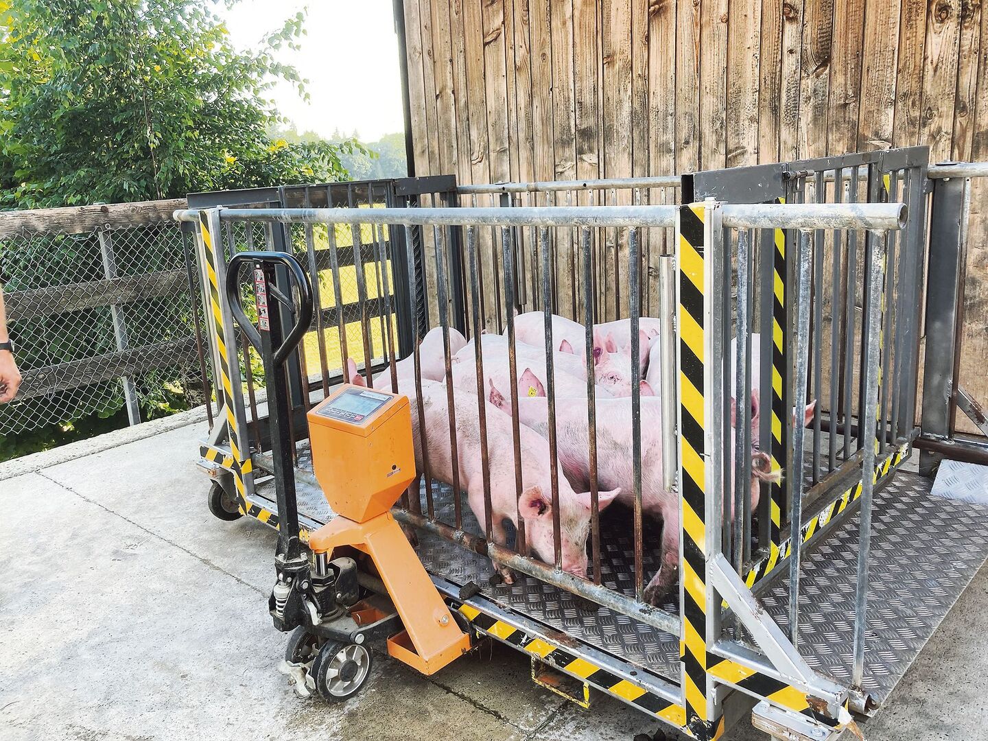 Wer wiegt, gewinnt, dachte Mathias Aebi, Landwirt aus Wynigen im Kanton Bern und baute sich deshalb einen Warteraum, mit dem er das Gewicht seiner Tiere vor dem Transport kontrollieren kann.