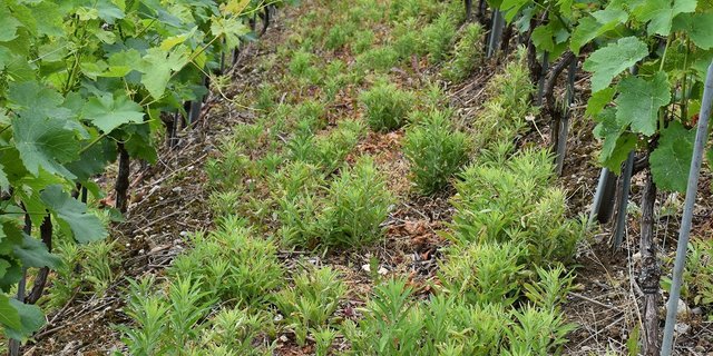 Mechanisch sind die Reben effizient entblättert, aber werden weniger fruchtbar
