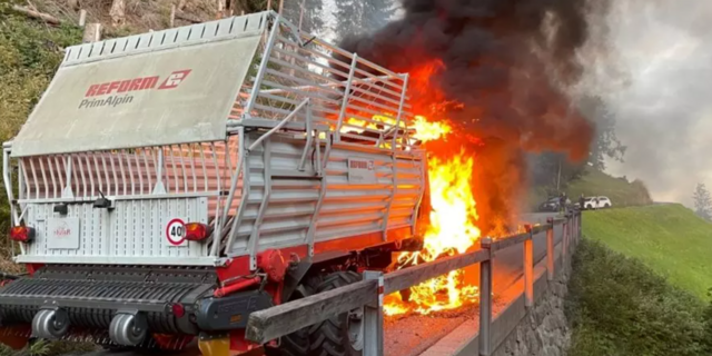 In der Nähe von Schiers geriet ein Heulader in Vollbrand