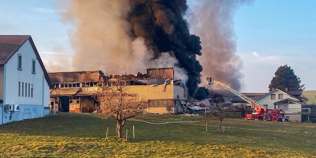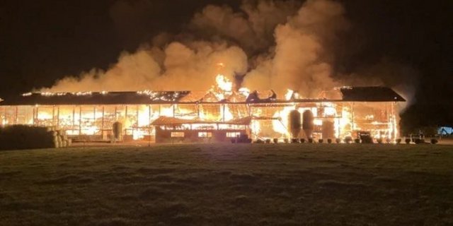 Bauernhausbrand: Ein Vermisster und 500 tote Tiere