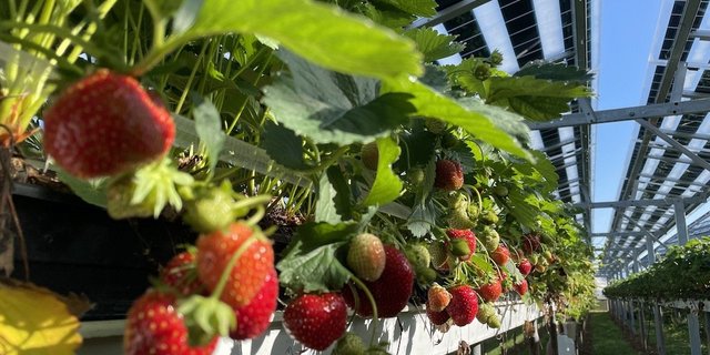 Agri-Photovoltaik Anlage liefert Sonnenstrom und Schatten für Beeren