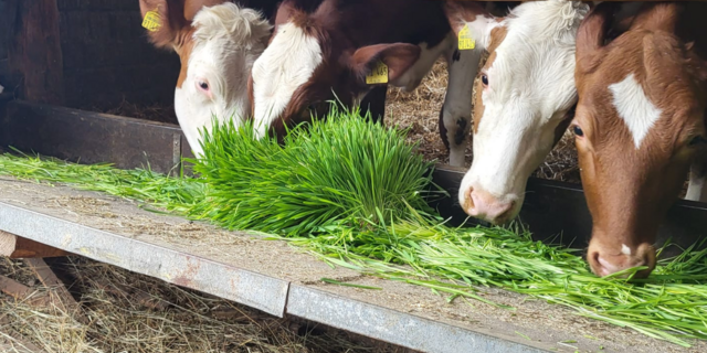 Im Container gewachsenes Gerstengras soll die Krippe füllen und die Milch verbessern