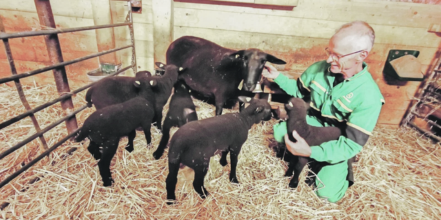 Mutterschaf Sina und ihre fünf munteren Lämmer