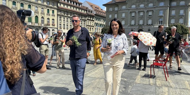 Produzenten verteilen im Abstimmungskampf die «letzten Berner Eier»